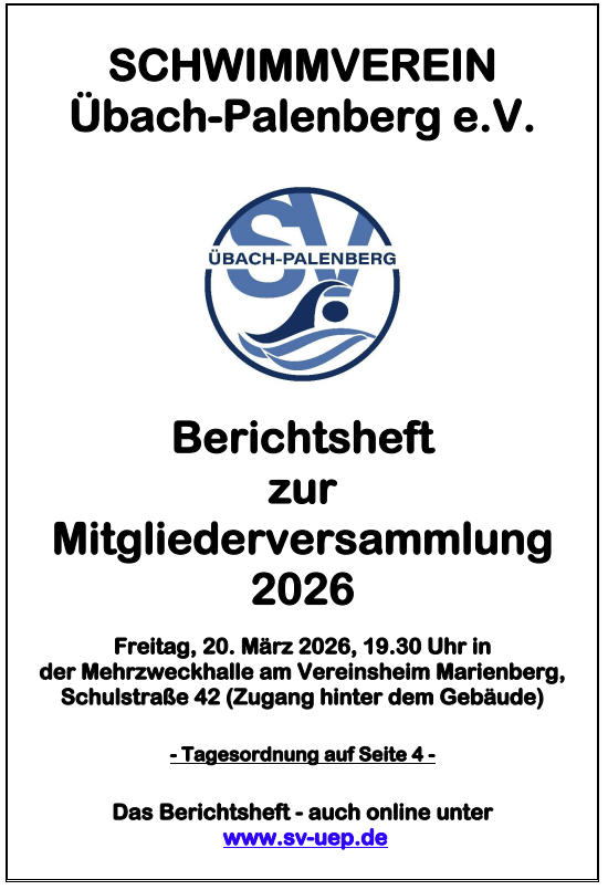 Bereits seit einigen Jahren wird die „Ewige Bestenliste Schwimmen“ nicht mehr im Berichtsheft veröffentlicht. Interessierte finden die aktuelle Fassung jederzeit auf unserer Homepage unter www.sv-uep.de im Bereich Schwimmen.